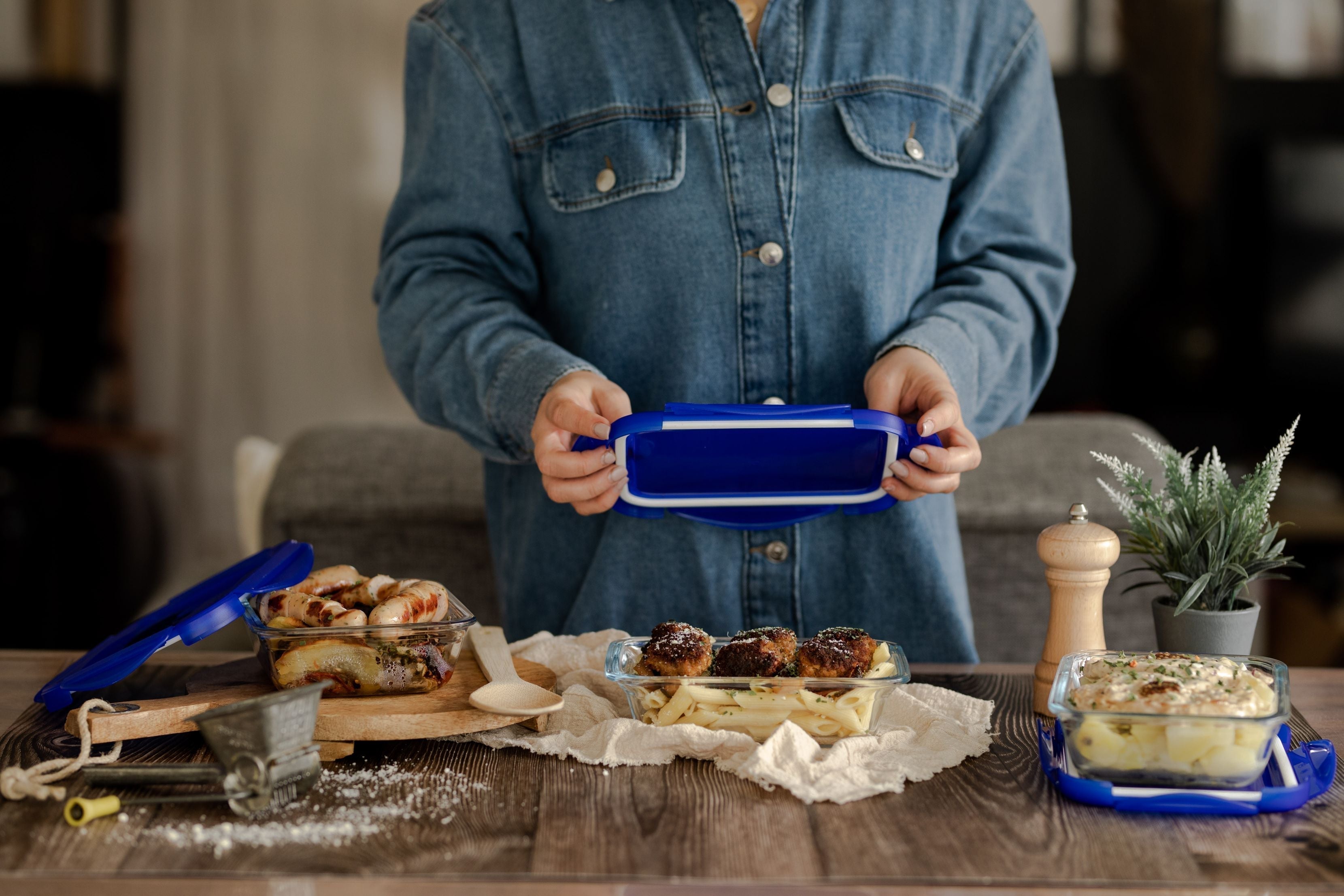Halten Sie Ihre Mahlzeiten frisch, schmackhaft und bereit, Ihnen überallhin zu folgen, dank des luft- und wasserdichten Deckels.