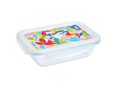 Dank ihres rechteckigen Formats, das zu 100% luftdicht ist, und ihrer Basis aus Borosilikatglas, die so konzipiert ist, dass sie allen Erschütterungen des Alltags standhält, ist diese Lunchbox die ideale Lösung, um Ihr Essen in aller Sicherheit zu transportieren.