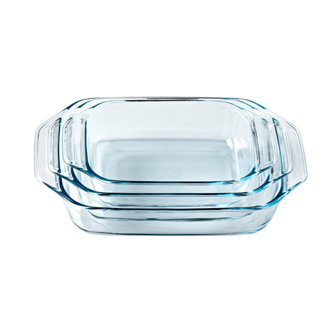 3er-Set rechteckige Ofenschalen aus Glas mit griffigem Griff - Irresistible