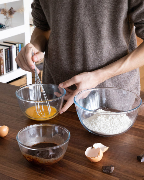 Mescolare le uova con la farina, il lievito e il sale in una ciotola.